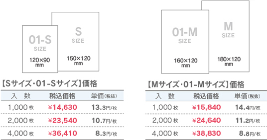 クリア薬袋【ワンカラー】 080005 ◆ご注文方法 4種のサイズから1種ご指定のうえ、ご希望の枚数をお選びください。各種1,000枚より承ります。 印刷内容は掲載レイアウトを参考に、またはご自由にご希望内容をご指示ください。 名入れ印刷色をご選択ください。 注文数 1,000 2,000 4,000 サイズ 01-S S 01-M M 種類 選択してください 前回同様 CYA-05 CYA-06 CYA-11 CYA-17 CYA-21 名入れ印刷色 選択してください 前回同様 クロ コン 濃グリーン アカ コゲ茶 濃グレー ブルー グリーン ムラサキ 在庫状態 : 在庫有り ¥14,630(税込) 只今お取扱い出来ません 数量