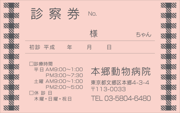 ペーパー診察券【カラーボード】 080002 ◆ご注文方法 裏面の仕様を、あらかじめ印刷された予約表付、もしくは自由なレイアウトが可能な裏面特注のいずれかよりお選びください。 印刷内容は掲載サンプルを参考に、またはご自由に希望内容をご指示ください。あわせて名入れ印刷色をご指示ください。裏面特注の場合、表裏別の色を指定できます。 ※表面レイアウト例はコチラからご確認ください。 ※裏面特注レイアウト例はコチラからご確認ください。 注文数 1,000 2,000 4,000 裏面種別 無し 予約表付 特注 うぐいす ーー 50枚 100枚 150枚 200枚 250枚 300枚 350枚 400枚 450枚 500枚 600枚 700枚 800枚 900枚 1,000枚 1,500枚 2,000枚 2,500枚 3,000枚 3,500枚 4,000枚 バフ ーー 50枚 100枚 150枚 200枚 250枚 300枚 350枚 400枚 450枚 500枚 600枚 700枚 800枚 900枚 1,000枚 1,500枚 2,000枚 2,500枚 3,000枚 3,500枚 4,000枚 バニラ ーー 50枚 100枚 150枚 200枚 250枚 300枚 350枚 400枚 450枚 500枚 600枚 700枚 800枚 900枚 1,000枚 1,500枚 2,000枚 2,500枚 3,000枚 3,500枚 4,000枚 もも ーー 50枚 100枚 150枚 200枚 250枚 300枚 350枚 400枚 450枚 500枚 600枚 700枚 800枚 900枚 1,000枚 1,500枚 2,000枚 2,500枚 3,000枚 3,500枚 4,000枚 ソラ ーー 50枚 100枚 150枚 200枚 250枚 300枚 350枚 400枚 450枚 500枚 600枚 700枚 800枚 900枚 1,000枚 1,500枚 2,000枚 2,500枚 3,000枚 3,500枚 4,000枚 みず ーー 50枚 100枚 150枚 200枚 250枚 300枚 350枚 400枚 450枚 500枚 600枚 700枚 800枚 900枚 1,000枚 1,500枚 2,000枚 2,500枚 3,000枚 3,500枚 4,000枚 名入れレイアウト 選択してください 前回同様 L01-1 L01-2 L02-1 L02-2 L03 L04 L06 L07 L08 L09 L10 名入れ印刷色 選択してください 前回同様 クロ コン 濃グリーン アカ コゲ茶 濃グレー グレー ブルー グリーン ムラサキ 裏面特注名入れ印刷色(特注選択時にご指定ください) ーー 前回同様 クロ コン 濃グリーン アカ コゲ茶 濃グレー グレー ブルー グリーン ムラサキ 裏面特注レイアウト選択(特注選択時にご指定ください) ーー 前回同様 サンプルA サンプルD サンプルE サンプルF サンプルH サンプルI サンプルJ サンプルK サンプルL サンプルM サンプルN 在庫状態 : 在庫有り ¥12,650(税込) 只今お取扱い出来ません 数量