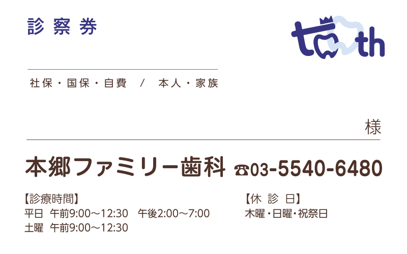 ペーパー診察券【トゥーストゥース】 010072 ◆ご注文方法 裏面の仕様を、あらかじめ印刷された予約表付、もしくは自由なレイアウトが可能な裏面特注のいずれかよりお選びください。 印刷内容は掲載サンプルを参考に、またはご自由に希望内容をご指示ください。あわせて名入れ印刷色をご指示ください。裏面特注の場合、表裏別の色を指定できます。 ※裏面特注レイアウト例はコチラからご確認ください。 注文数 1,000 2,000 4,000 裏面種別 無し 予約表付 特注 パープル ーー 250枚 500枚 1,000枚 1,500枚 2,000枚 2,500枚 3,000枚 3,500枚 4,000枚 グリーン ーー 250枚 500枚 1,000枚 1,500枚 2,000枚 2,500枚 3,000枚 3,500枚 4,000枚 ブラウン ーー 250枚 500枚 1,000枚 1,500枚 2,000枚 2,500枚 3,000枚 3,500枚 4,000枚 ネイビー ーー 250枚 500枚 1,000枚 1,500枚 2,000枚 2,500枚 3,000枚 3,500枚 4,000枚 名入れレイアウト 選択してください 前回同様 L1 L2 L3 L4 名入れ印刷色 選択してください 前回同様 クロ コン 濃グリーン アカ コゲ茶 濃グレー ブルー グリーン ムラサキ 裏面特注名入れ印刷色(特注選択時にご指定ください) ーー 前回同様 クロ コン 濃グリーン アカ コゲ茶 濃グレー ブルー グリーン ムラサキ 裏面特注レイアウト選択(特注選択時にご指定ください) ーー 前回同様 レイアウト例1 レイアウト例2 レイアウト例3 レイアウト例4 レイアウト例5 レイアウト例6 レイアウト例7 レイアウト例8 レイアウト例9 レイアウト例10 レイアウト例11 その他ご要望 在庫状態 : 在庫有り ¥12,650(税込) 只今お取扱い出来ません 数量