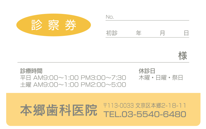 ペーパー診察券【だ円】 010026 ◆ご注文方法 裏面の仕様を、あらかじめ印刷された予約表付、もしくは自由なレイアウトが可能な裏面特注のいずれかよりお選びください。 印刷内容は掲載サンプルを参考に、またはご自由に希望内容をご指示ください。あわせて名入れ印刷色をご指示ください。裏面特注の場合、表裏別の色を指定できます。 ※裏面特注レイアウト例はコチラからご確認ください。 注文数 1,000 2,000 4,000 裏面種別 無し 予約表付 特注 グリーン ーー 250枚 500枚 1,000枚 1,500枚 2,000枚 2,500枚 3,000枚 3,500枚 4,000枚 ピンク ーー 250枚 500枚 1,000枚 1,500枚 2,000枚 2,500枚 3,000枚 3,500枚 4,000枚 オレンジ ーー 250枚 500枚 1,000枚 1,500枚 2,000枚 2,500枚 3,000枚 3,500枚 4,000枚 ブルー ーー 250枚 500枚 1,000枚 1,500枚 2,000枚 2,500枚 3,000枚 3,500枚 4,000枚 名入れレイアウト 選択してください 前回同様 L1 L2 L3 L4 名入れ印刷色 選択してください 前回同様 クロ コン 濃グリーン アカ コゲ茶 濃グレー ブルー グリーン ムラサキ 裏面特注名入れ印刷色(特注選択時にご指定ください) ーー 前回同様 クロ コン 濃グリーン アカ コゲ茶 濃グレー ブルー グリーン ムラサキ 裏面特注レイアウト選択(特注選択時にご指定ください) ーー 前回同様 レイアウト例1 レイアウト例2 レイアウト例3 レイアウト例4 レイアウト例5 レイアウト例6 レイアウト例7 レイアウト例8 レイアウト例9 レイアウト例10 レイアウト例11 その他ご要望 在庫状態 : 在庫有り ¥12,650(税込) 只今お取扱い出来ません 数量