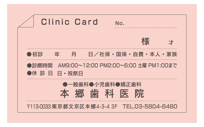 ペーパー診察券【カラーボード】 010028 ◆ご注文方法 裏面の仕様を、あらかじめ印刷された予約表付、もしくは自由なレイアウトが可能な裏面特注のいずれかよりお選びください。 印刷内容は掲載サンプルを参考に、またはご自由に希望内容をご指示ください。あわせて名入れ印刷色をご指示ください。裏面特注の場合、表裏別の色を指定できます。 ※表面レイアウト例はコチラからご確認ください。 ※裏面特注レイアウト例はコチラからご確認ください。 注文数 1,000 2,000 4,000 裏面種別 無し 予約表付 特注 みず ーー 250枚 500枚 1,000枚 1,500枚 2,000枚 2,500枚 3,000枚 3,500枚 4,000枚 もも ーー 250枚 500枚 1,000枚 1,500枚 2,000枚 2,500枚 3,000枚 3,500枚 4,000枚 うぐいす ーー 250枚 500枚 1,000枚 1,500枚 2,000枚 2,500枚 3,000枚 3,500枚 4,000枚 バニラ ーー 250枚 500枚 1,000枚 1,500枚 2,000枚 2,500枚 3,000枚 3,500枚 4,000枚 ソラ ーー 250枚 500枚 1,000枚 1,500枚 2,000枚 2,500枚 3,000枚 3,500枚 4,000枚 バフ ーー 250枚 500枚 1,000枚 1,500枚 2,000枚 2,500枚 3,000枚 3,500枚 4,000枚 名入れレイアウト 選択してください 前回同様 L01-1 L01-2 L02-1 L02-2 L03 L04 L05 L08-1 L08-2 L09 L10 L11 L12 L13 名入れ印刷色 選択してください 前回同様 クロ コン 濃グリーン アカ コゲ茶 濃グレー ブルー グリーン ムラサキ 裏面特注名入れ印刷色(特注選択時にご指定ください) ーー 前回同様 クロ コン 濃グリーン アカ コゲ茶 濃グレー ブルー グリーン ムラサキ 裏面特注レイアウト選択(特注選択時にご指定ください) ーー 前回同様 レイアウト例1 レイアウト例2 レイアウト例3 レイアウト例4 レイアウト例5 レイアウト例6 レイアウト例7 レイアウト例8 レイアウト例9 レイアウト例10 レイアウト例11 その他ご要望 在庫状態 : 在庫有り ¥12,650(税込) 只今お取扱い出来ません 数量