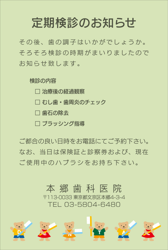 リコールカード【デンタルベア】
