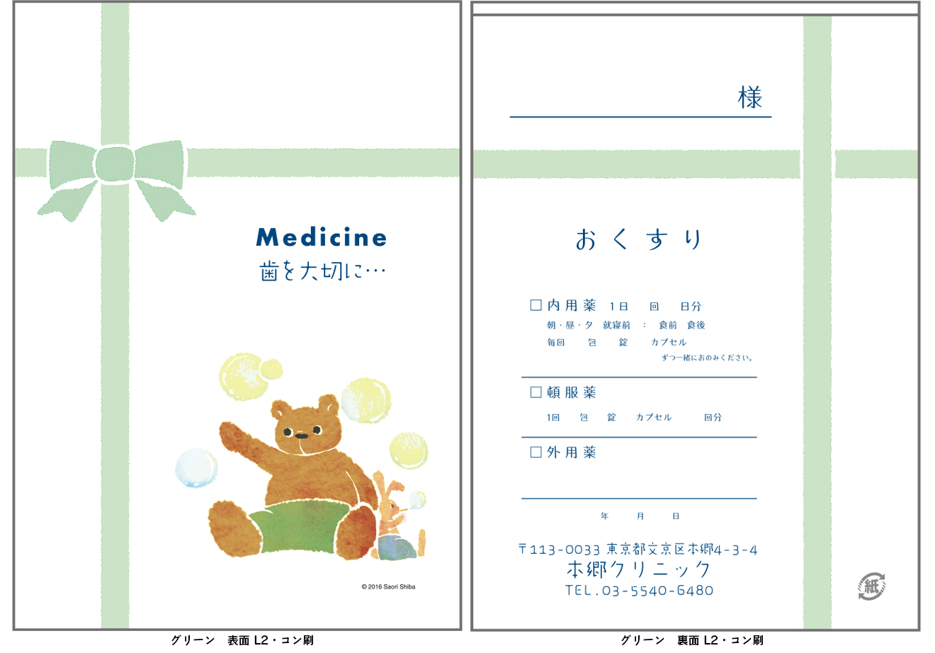 両面印刷ペーパー薬袋【リボン】 010043 ◆ご注文方法 ご希望の枚数をお選びください。各柄の中から単品、もしくは各柄組み合わせて合計1,000枚より承ります。 印刷内容は表面・裏面それぞれ掲載サンプルを参考に、または自由にご希望内容をご指示ください。あわせて名入れ印刷色をご選択ください。 印刷色は表裏面は共通の1色になります。 注文数 1,000 2,000 4,000 サイズ A6 B6 イエロー ーー 250枚 500枚 1,000枚 1,500枚 2,000枚 2,500枚 3,000枚 3,500枚 4,000枚 ピンク ーー 250枚 500枚 1,000枚 1,500枚 2,000枚 2,500枚 3,000枚 3,500枚 4,000枚 ブルー ーー 250枚 500枚 1,000枚 1,500枚 2,000枚 2,500枚 3,000枚 3,500枚 4,000枚 グリーン ーー 250枚 500枚 1,000枚 1,500枚 2,000枚 2,500枚 3,000枚 3,500枚 4,000枚 名入れレイアウト 選択してください 前回同様 L1 L2 L3 L4 名入れ印刷色 選択してください 前回同様 クロ コン 濃グリーン アカ コゲ茶 濃グレー ブルー グリーン ムラサキ その他ご要望 在庫状態 : 在庫有り ¥15,070(税込) 只今お取扱い出来ません 数量