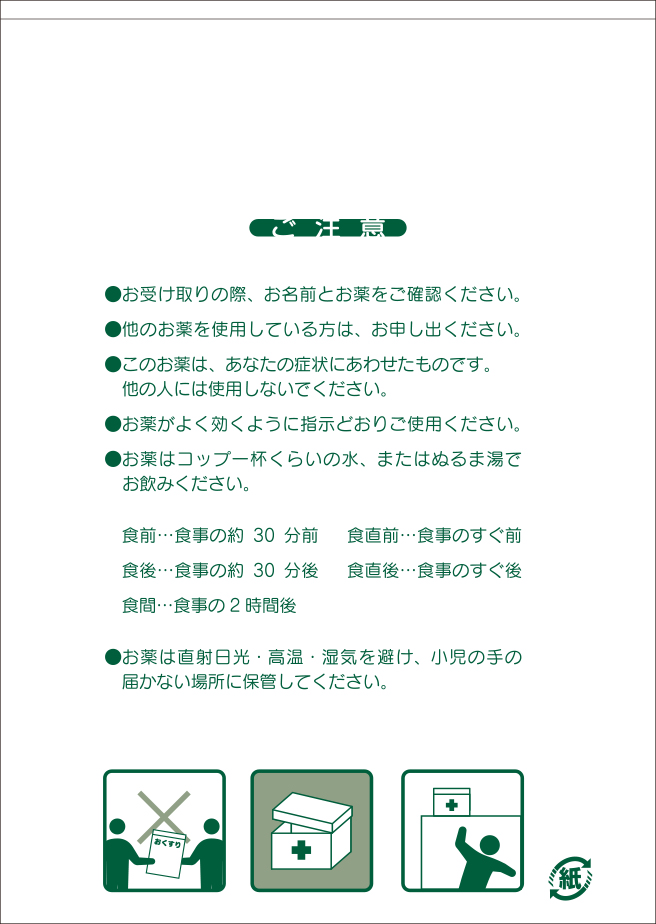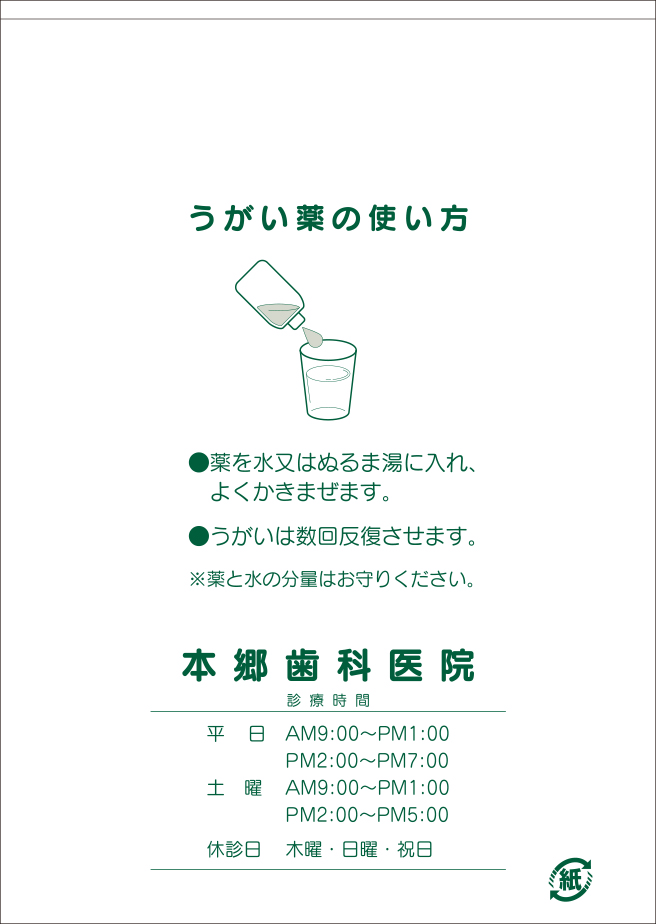 無地ペーパー薬袋 010044 ◆ご注文方法 6種のサイズから1種ご指定のうえ、ご希望の枚数をお選びください。1,000枚より承ります。 印刷内容は掲載レイアウトを参考に、またはご自由に希望内容をご指示ください。あわせて名入れ印刷色をご指示ください。 ▶デザインサンプルはこちら 注文数 1,000 2,000 4,000 サイズ S B7 A6 M B6 A5 表面 ーー 001 002 003 004 005 006 007 008 009 010 011 012 013 014 015 016 017 018 019 020 021 022 023 024 025 026 027 028 029 030 031 032 033 034 035 036 037 038 裏面 ーー 001 002 003 004 005 006 007 008 009 010 011 012 013 014 015 016 017 018 019 020 021 022 023 024 025 026 名入れ印刷色 選択してください 前回同様 クロ コン 濃グリーン アカ コゲ茶 濃グレー グレー ブルー グリーン ムラサキ その他ご要望 在庫状態 : 在庫有り ¥11,550(税込) 只今お取扱い出来ません 数量