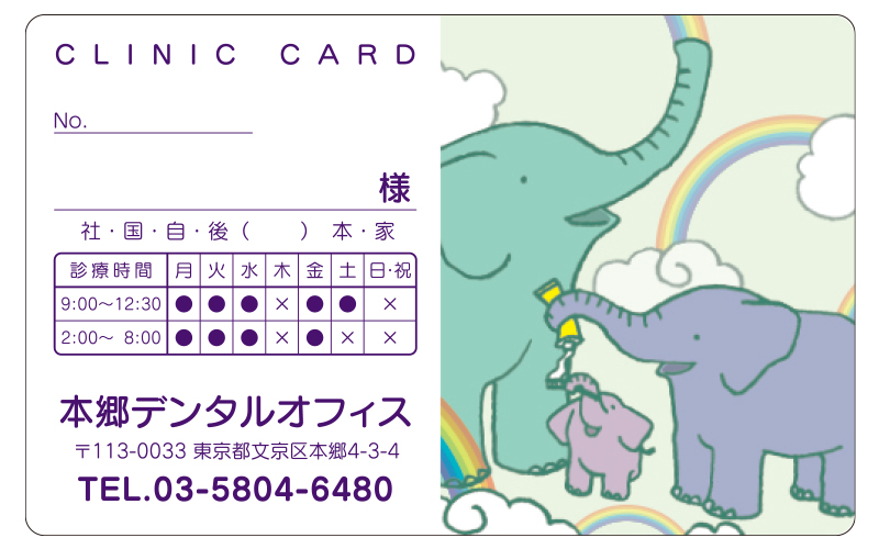 ペーパー診察券【ゆめのえほん】白タイプ 010088 ◆ご注文方法 裏面の仕様を、あらかじめ印刷された予約表付、もしくは自由なレイアウトが可能な裏面特注のいずれかよりお選びください。 印刷内容は掲載サンプルを参考に、またはご自由に希望内容をご指示ください。あわせて名入れ印刷色をご指示ください。裏面特注の場合、表裏別の色を指定できます。 ※裏面特注レイアウト例はコチラからご確認ください。 注文数 1,000 2,000 4,000 裏面種別 無し 予約表付 特注 くまB ーー 250枚 500枚 1,000枚 1,500枚 2,000枚 2,500枚 3,000枚 3,500枚 4,000枚 くまA ーー 250枚 500枚 1,000枚 1,500枚 2,000枚 2,500枚 3,000枚 3,500枚 4,000枚 ばくB ーー 250枚 500枚 1,000枚 1,500枚 2,000枚 2,500枚 3,000枚 3,500枚 4,000枚 ばくA ーー 250枚 500枚 1,000枚 1,500枚 2,000枚 2,500枚 3,000枚 3,500枚 4,000枚 ペンギンB ーー 250枚 500枚 1,000枚 1,500枚 2,000枚 2,500枚 3,000枚 3,500枚 4,000枚 ペンギンA ーー 250枚 500枚 1,000枚 1,500枚 2,000枚 2,500枚 3,000枚 3,500枚 4,000枚 ぞうB ーー 250枚 500枚 1,000枚 1,500枚 2,000枚 2,500枚 3,000枚 3,500枚 4,000枚 ぞうA ーー 250枚 500枚 1,000枚 1,500枚 2,000枚 2,500枚 3,000枚 3,500枚 4,000枚 名入れレイアウト 選択してください 前回同様 L1 L2 L3 名入れ印刷色 選択してください 前回同様 クロ コン 濃グリーン アカ コゲ茶 濃グレー ブルー グリーン ムラサキ 裏面特注名入れ印刷色(特注選択時にご指定ください) ーー 前回同様 クロ コン 濃グリーン アカ コゲ茶 濃グレー ブルー グリーン ムラサキ 裏面特注レイアウト選択(特注選択時にご指定ください) ーー 前回同様 レイアウト例1 レイアウト例2 レイアウト例3 レイアウト例4 レイアウト例5 レイアウト例6 レイアウト例7 レイアウト例8 レイアウト例9 レイアウト例10 レイアウト例11 その他ご要望 在庫状態 : 在庫有り ¥12,650(税込) 只今お取扱い出来ません 数量